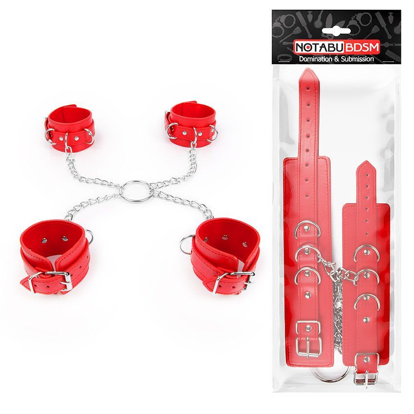 БДСМ-аксессуар придаст остроты сексу, подарит яркие, незабываемые эмоции! В комплект входят наручники и оковы, размер которых регулируется с помощью ремней. При необходимости все изделия скрепляются друг с другом с помощью металлических цепочек. Интимный аксессуар поможет усилить доминирование одного участника любовной игры и подчеркнёт подчинённое положение другого.