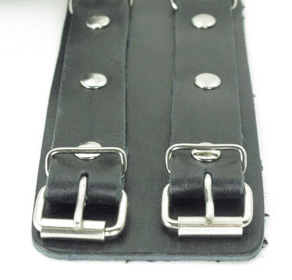 Черные кожаные оковы с двумя пряжками.