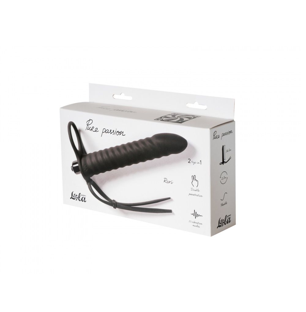 Насадка для двойного проникновения Rori из гипоаллергенного силикона. Обладает рельефной и гибкой формой. Надежно крепится у основания члена благодаря силиконовому кольцу. Оно хорошо тянется и подходит на любой размер. Снизу насадка имеет лассо для дополнительной фиксации за мошонкой. Дополнительная стимуляция осуществляется благодаря вибропуле с 10 скоростями. Она легко извлекается из силиконовой насадки и может использоваться отдельно. Внутренний диаметр кольца – 3см.