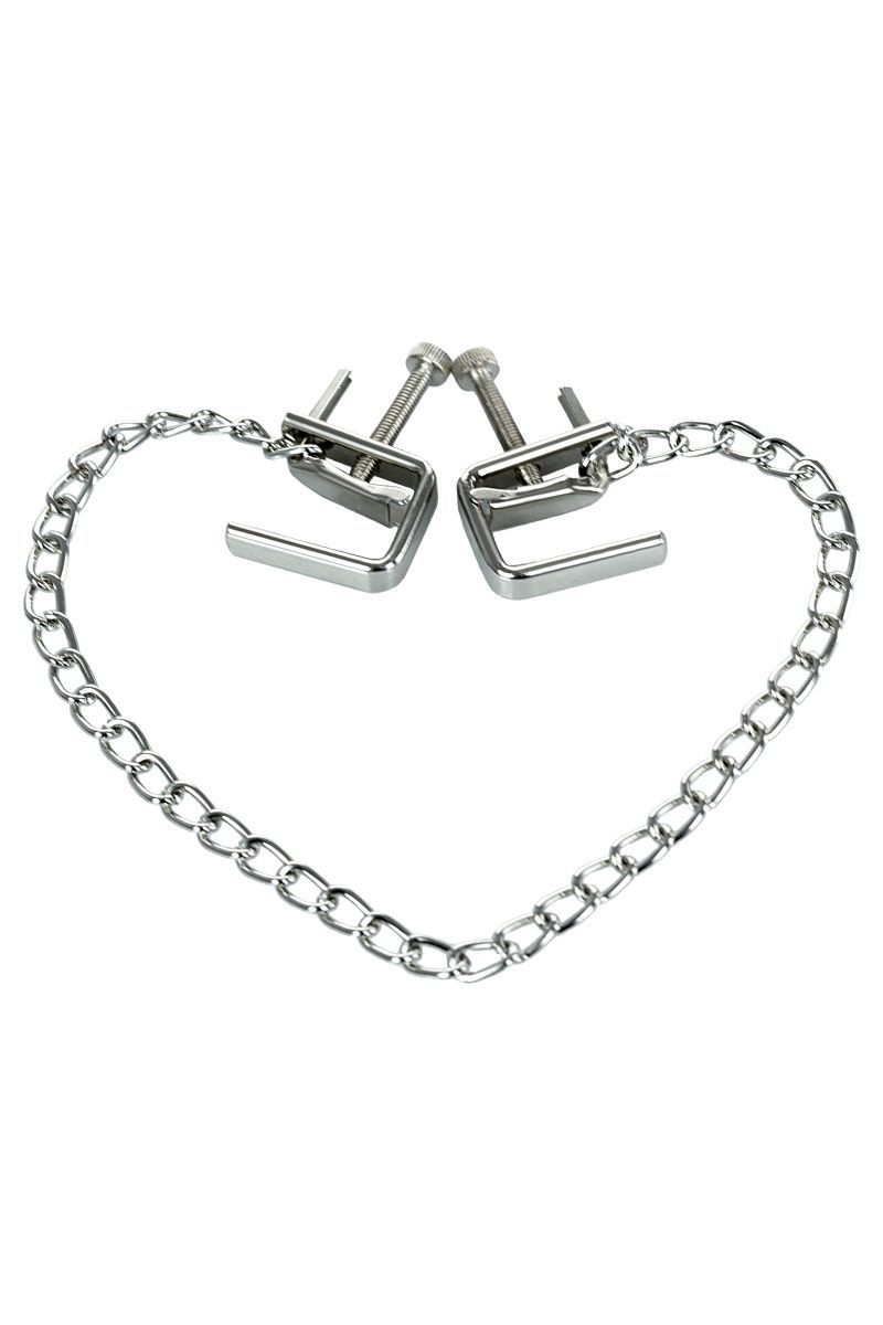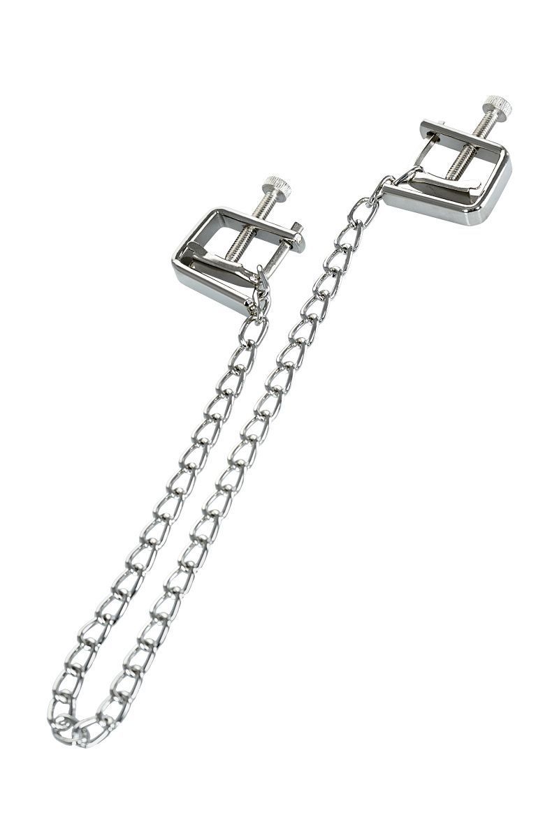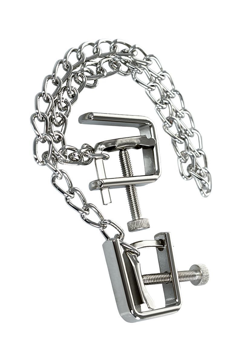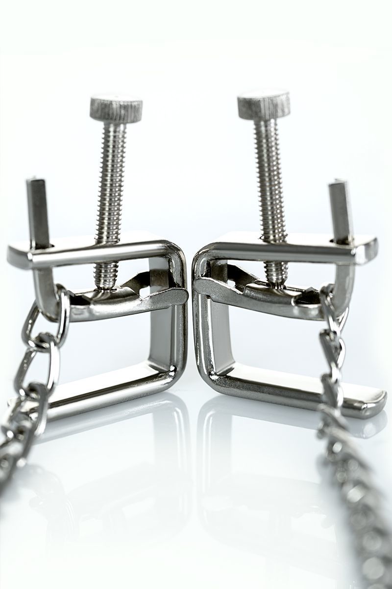 Зажимы-тиски - классическая форма для стимуляции сосков. Сила сжатия регулируется болтиком, что позволяет постепенно менять давление.