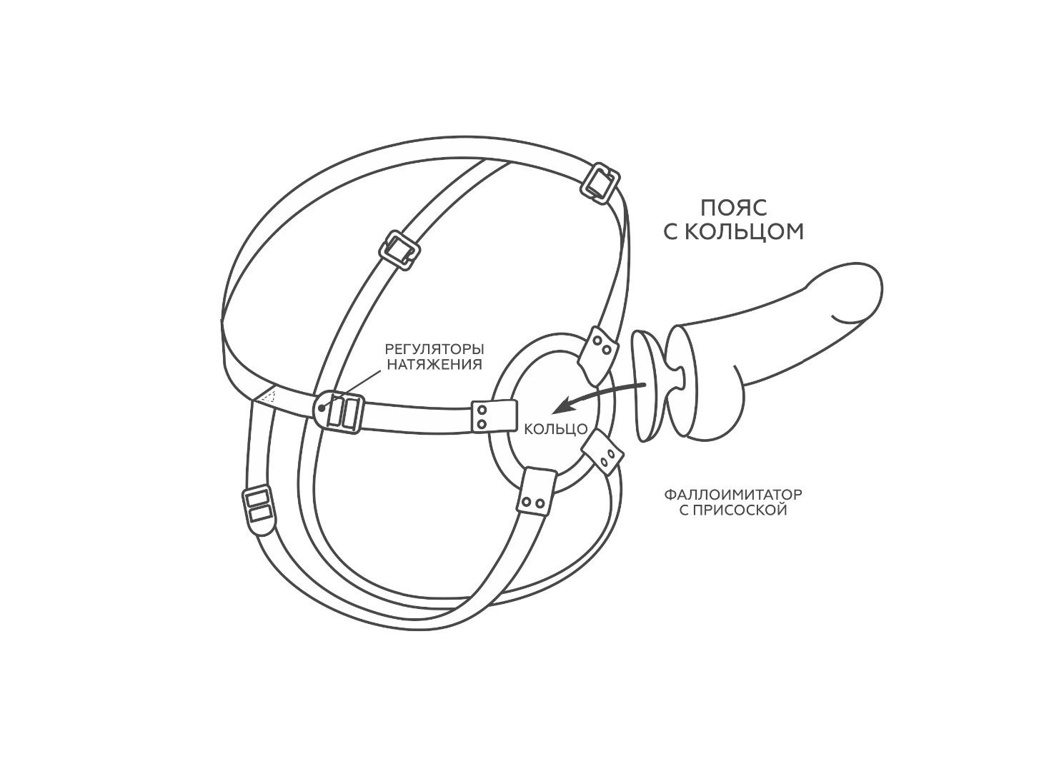 Конструкция такого пояса удобна тем, что любой реалистик, снабженный присоской, можно легко установить в этот страпон. Присоска входит в кольцо за счет эластичности, скручиваясь в «трубочку» и раскрываясь внутри кольца, надежно фиксируется в отверстии. Еще одно удобство этой конструкции харнесса: присоска, упираясь в тело, прекрасно амортизирует все нагрузки при движении фаллоимитатора и может присасываться к телу, обеспечивая дополнительную фиксацию. Пояс снабжен бандажом на пояснице, покрытым изнутри гигроскопичным бархатом. Фастекс на боковом ремне позволяет отрегулировать пояс всего один раз и просто застегивать и расстегивать страпон в одно движение.